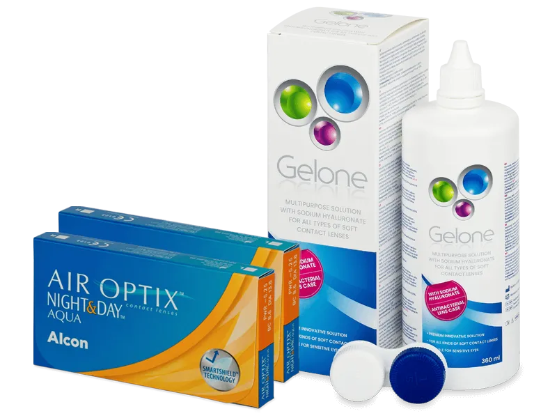 Air Optix Night and Day Aqua (2x3 db lencse) + Gelone kontaktlencse folyadék 360 ml